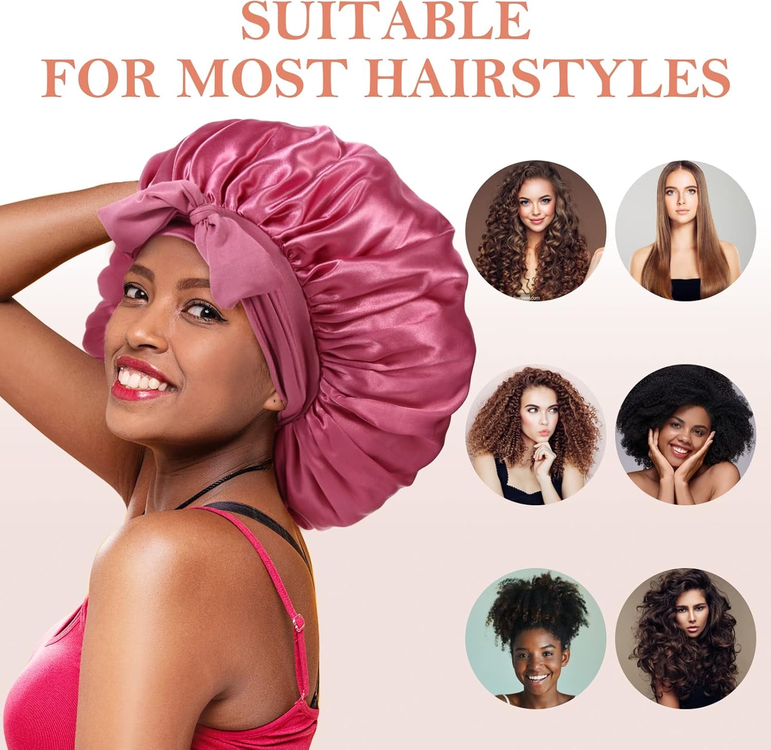 • TRAVEL-FRIENDLY & EASY TO CARE FOR: Compact and washable, this bonnet for sleeping women fits easily in your bag or drawer. The high-quality satin material resists fading and holds up to repeated use, making it a durable hair bonnet for women.
